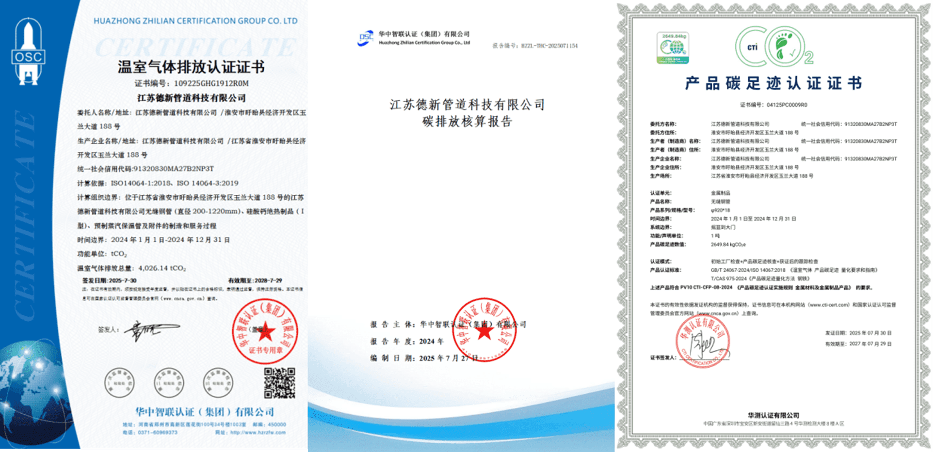 江苏德新管道科技有限公司产品碳足迹、温室气体排放、碳排放核算报告网上公示