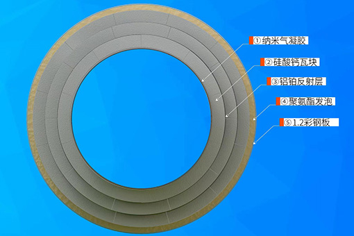 同时,在各保温层间均裹敷铝铂反射布,减少辐射传热。这种复合隔热保温结构,让各保温层成为毫无空隙的整体,充分发挥了各种原材料的优点,在成本、耐磨性、整体刚性、使用寿命及隔热保温性能上取得了比较好的平衡。